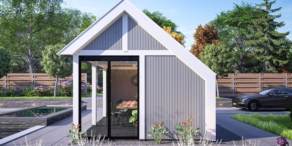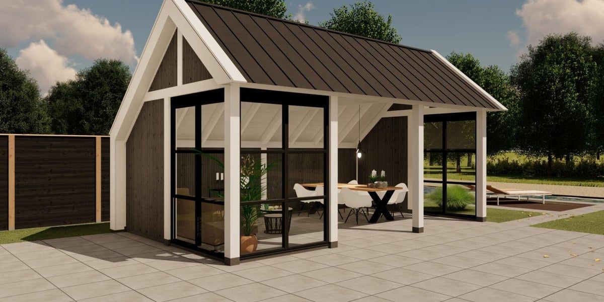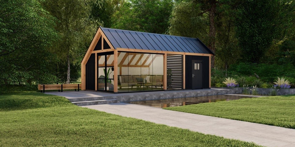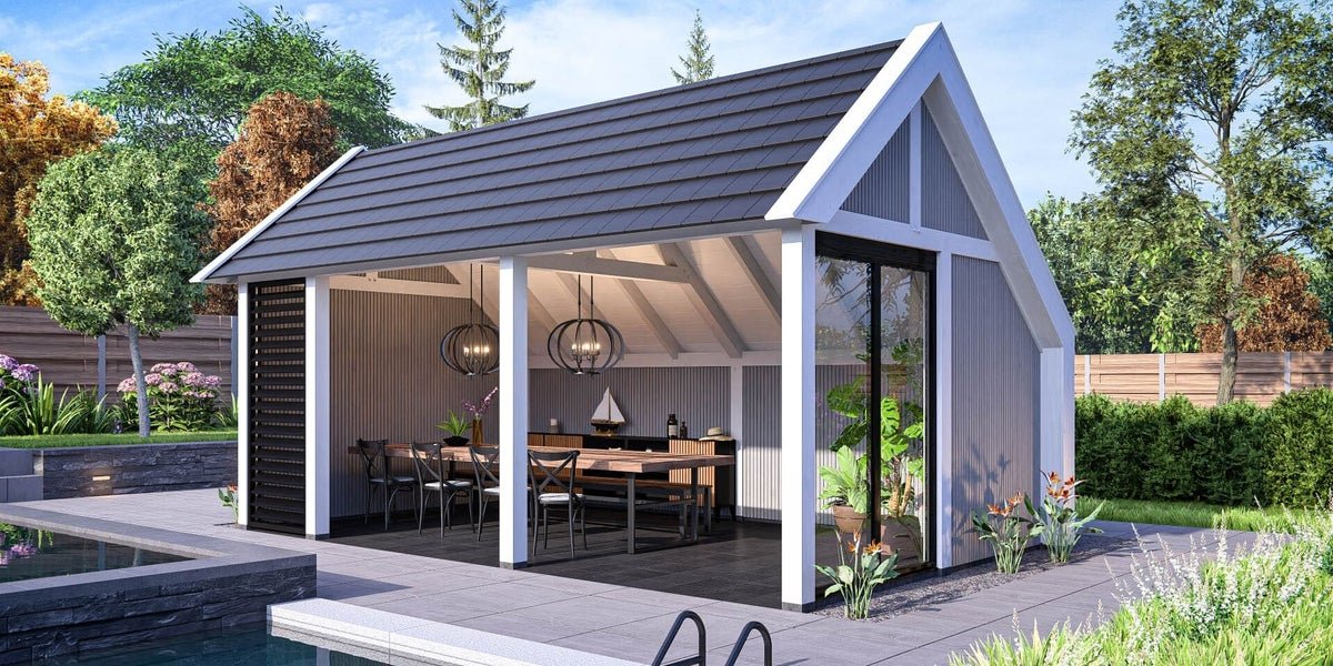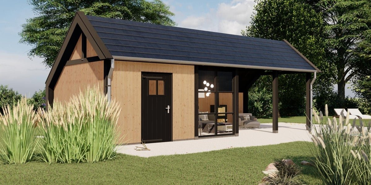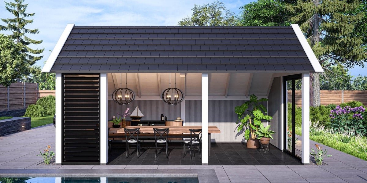 Moderne kapschuur voor tuinkantoor, tuinkamer, poolhouse of B&B.