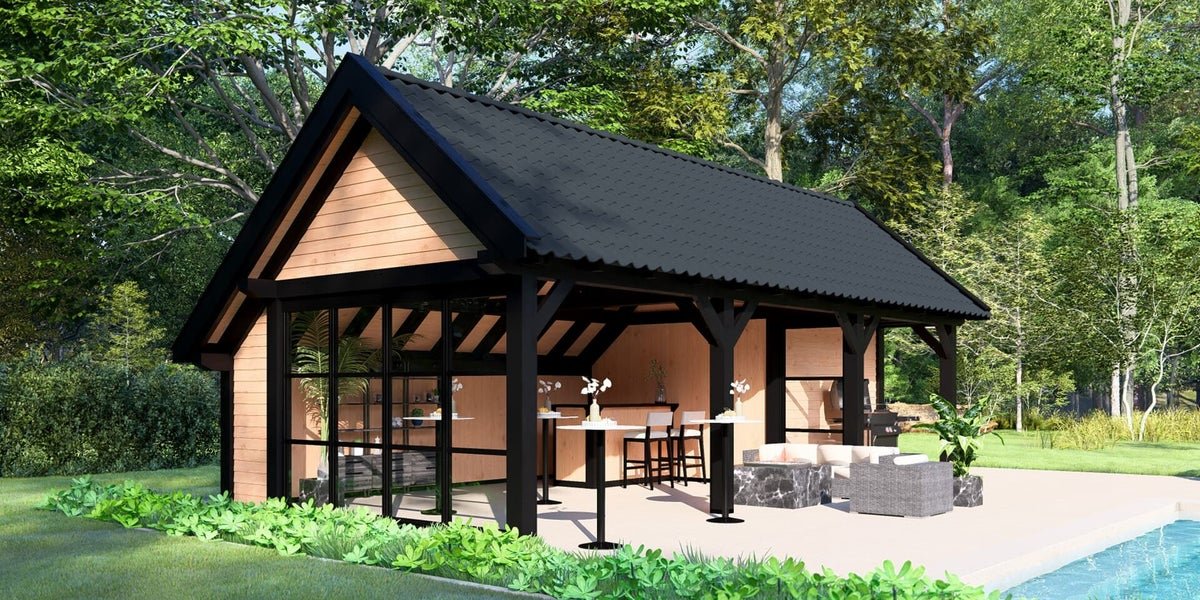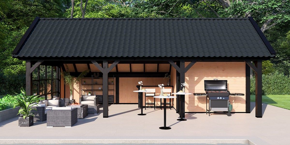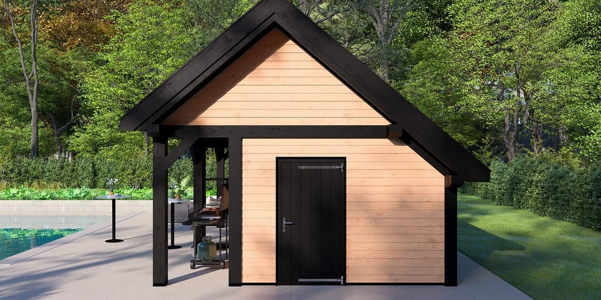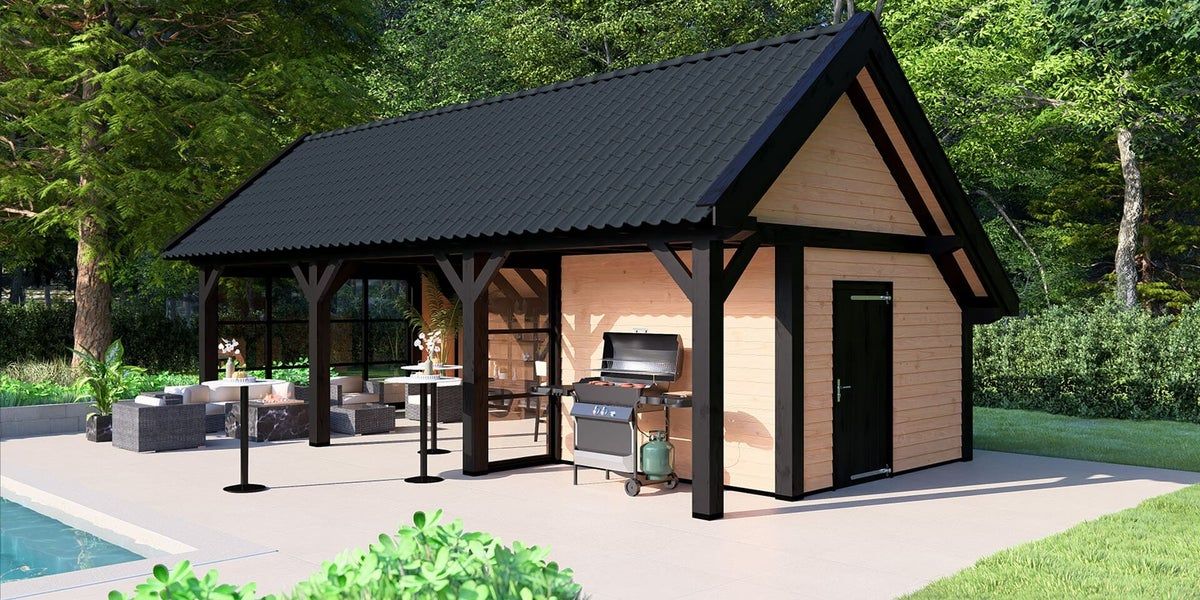 Buitenverblijf Stockholm XXL is het grootste type kapschuur in ons assortiment. Deze kapschuur beschikt over robuuste 190x190mm staanders en ringbalken, die meer diepte creëren in vergelijking met de reguliere Stockholm. De tulpschoren met pen-en-gat-verbindingen dragen bij aan de landelijke en rustieke uitstraling. Met aandacht voor authentieke details wordt de kapschuur vakkundig afgewerkt.
