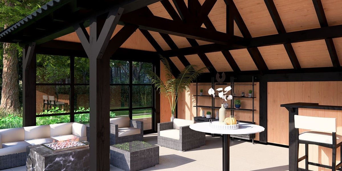 Daarnaast kan de kapschuur worden geleverd met Steellook glaswanden en -deuren, wat buitenverblijf Stockholm XXL een unieke uitstraling geeft.