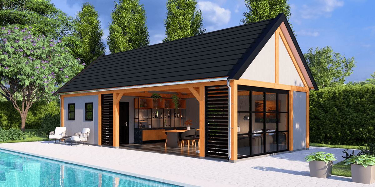 Buitenverblijf Monaco XXL creëert met zijn grote dakhelling een heldere en luchtige leefruimte op de bovenverdieping, perfect voor een vide of extra verdieping. Dit model is voorzien van staanders en ringbalken van 190×190 mm, wat zorgt voor extra diepte ten opzichte van de reguliere Monaco. Het strakke en onderscheidende ontwerp sluit naadloos aan bij een landelijke of bosrijke omgeving, waardoor het bijzonder geschikt is voor een poolhouse. Buitenverblijf Monaco XXL biedt niet alleen functionele voordelen, maar is ook een elegante en stijlvolle aanvulling op uw tuin.