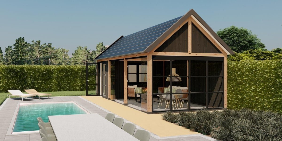 Dankzij de grote dakhelling is dit zadeldak zeer geschikt voor het creëren van een extra verdieping of een vide. Buitenverblijf Monaco is de beste keuze voor een zadeldak met een luxueuze uitstraling. Voor grotere diepten kunt u ook kijken bij ons Buitenverblijf Monaco XXL.