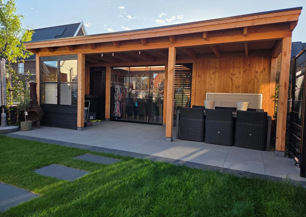 “Wat een geweldig werk hebben deze gasten geleverd. Volledig maatwerk en prachtige materialen. Ons tuinhuis met overkapping is echt een droom die werkelijkheid is geworden.”