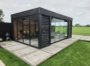 De combinatie van glas, hout en shutters geeft het geheel een warme en moderne uitstraling. Een plek waar stijl, comfort en vakmanschap samenkomen, precies wat wij met Garden Retreats willen creëren.