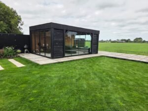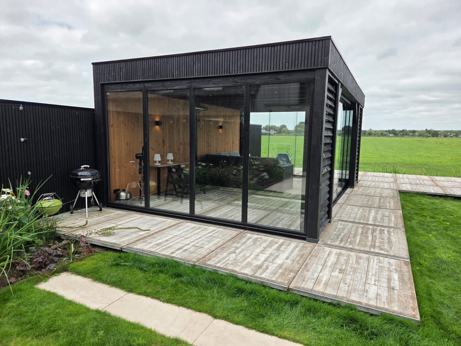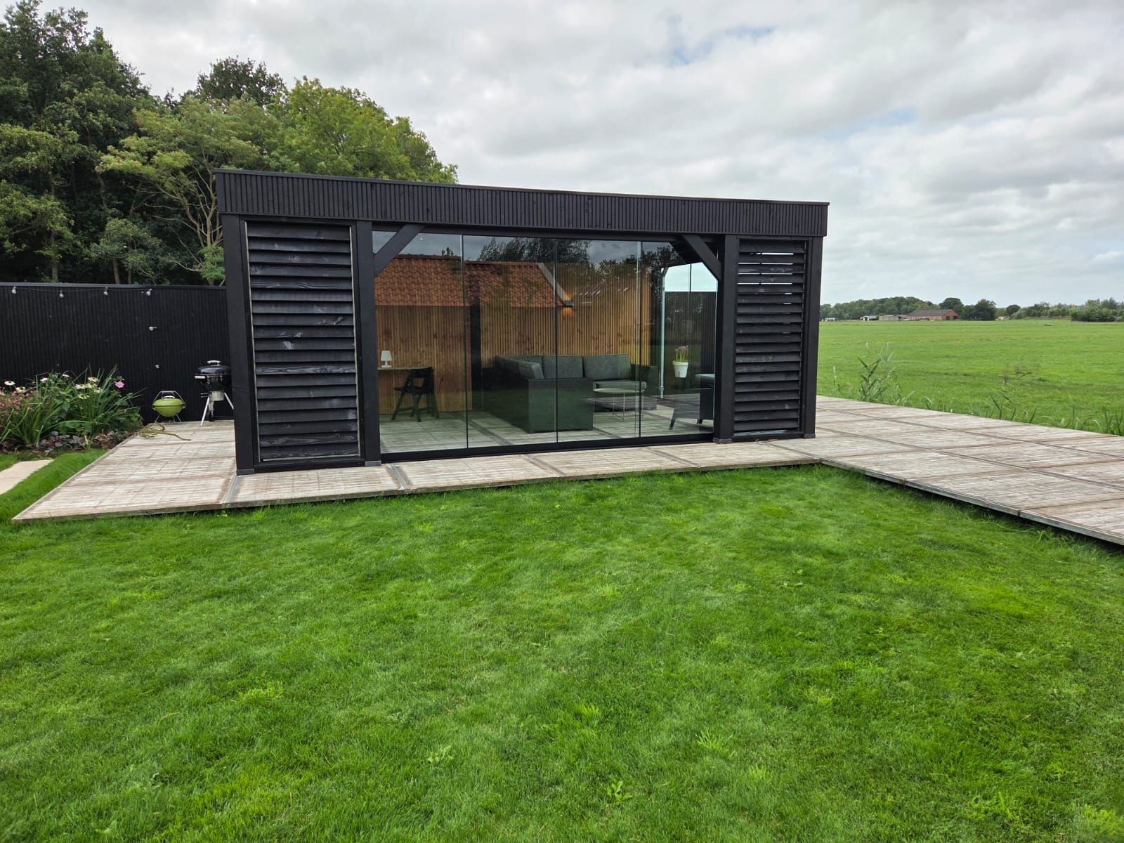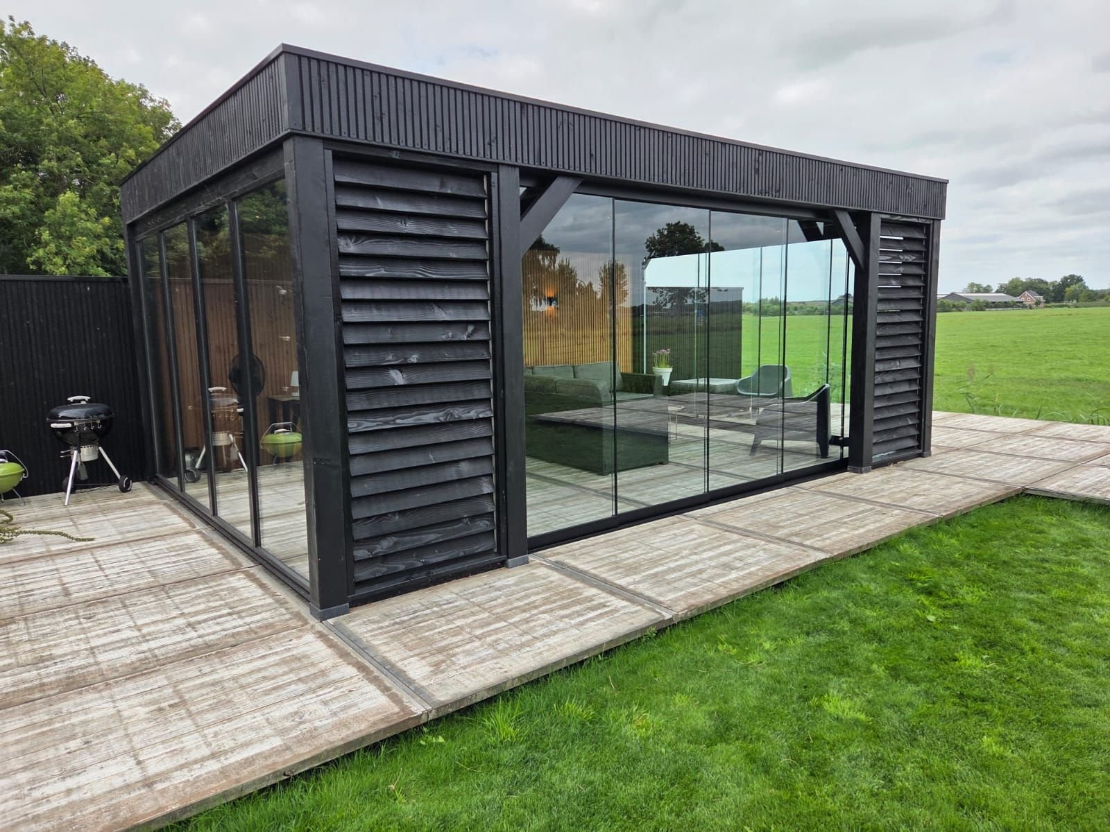 In Nederhorst den Berg realiseerden we een stijlvol Toplawood buitenverblijf van het model Nice, uitgevoerd met glaswanden en shutters voor een warme, moderne uitstraling.